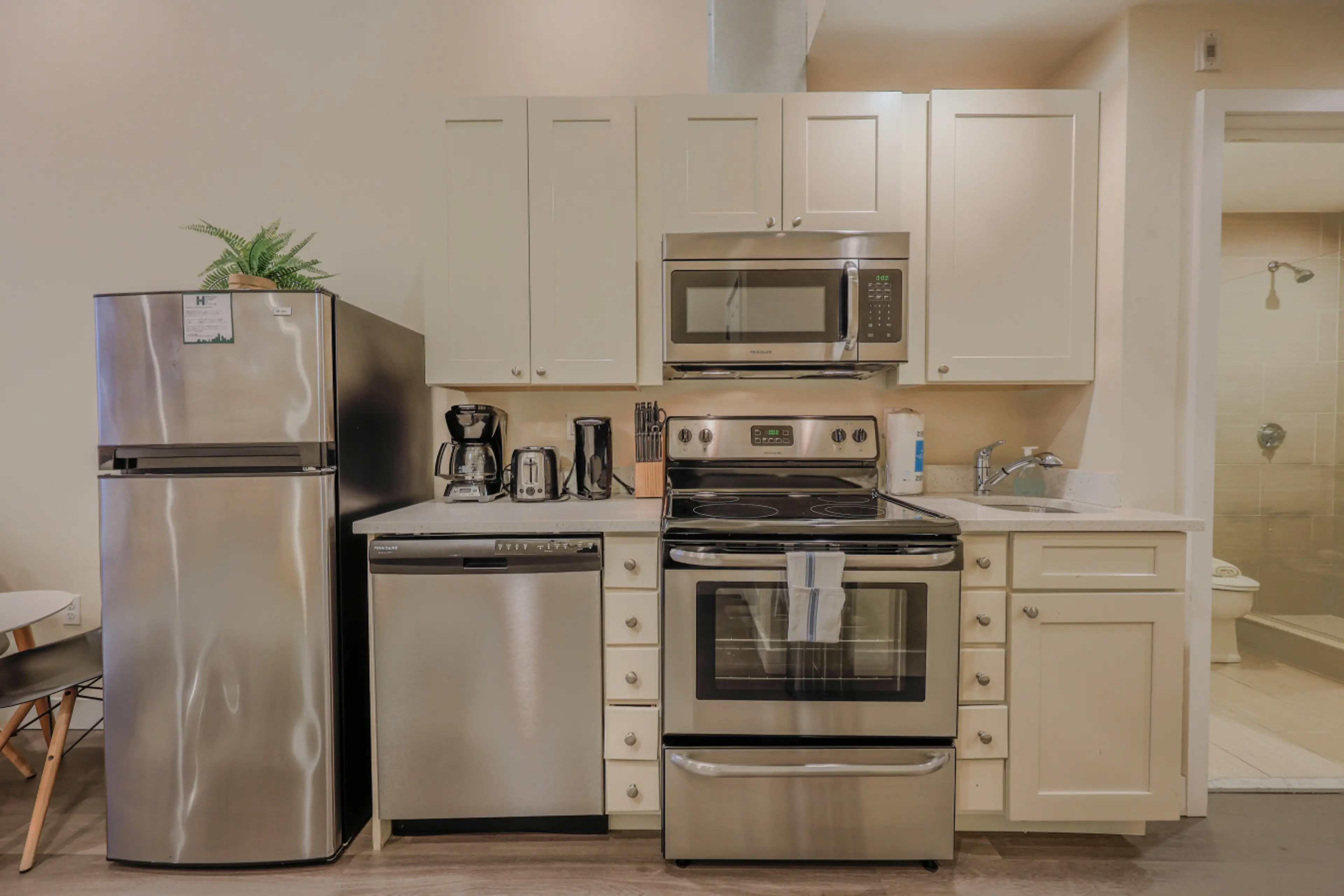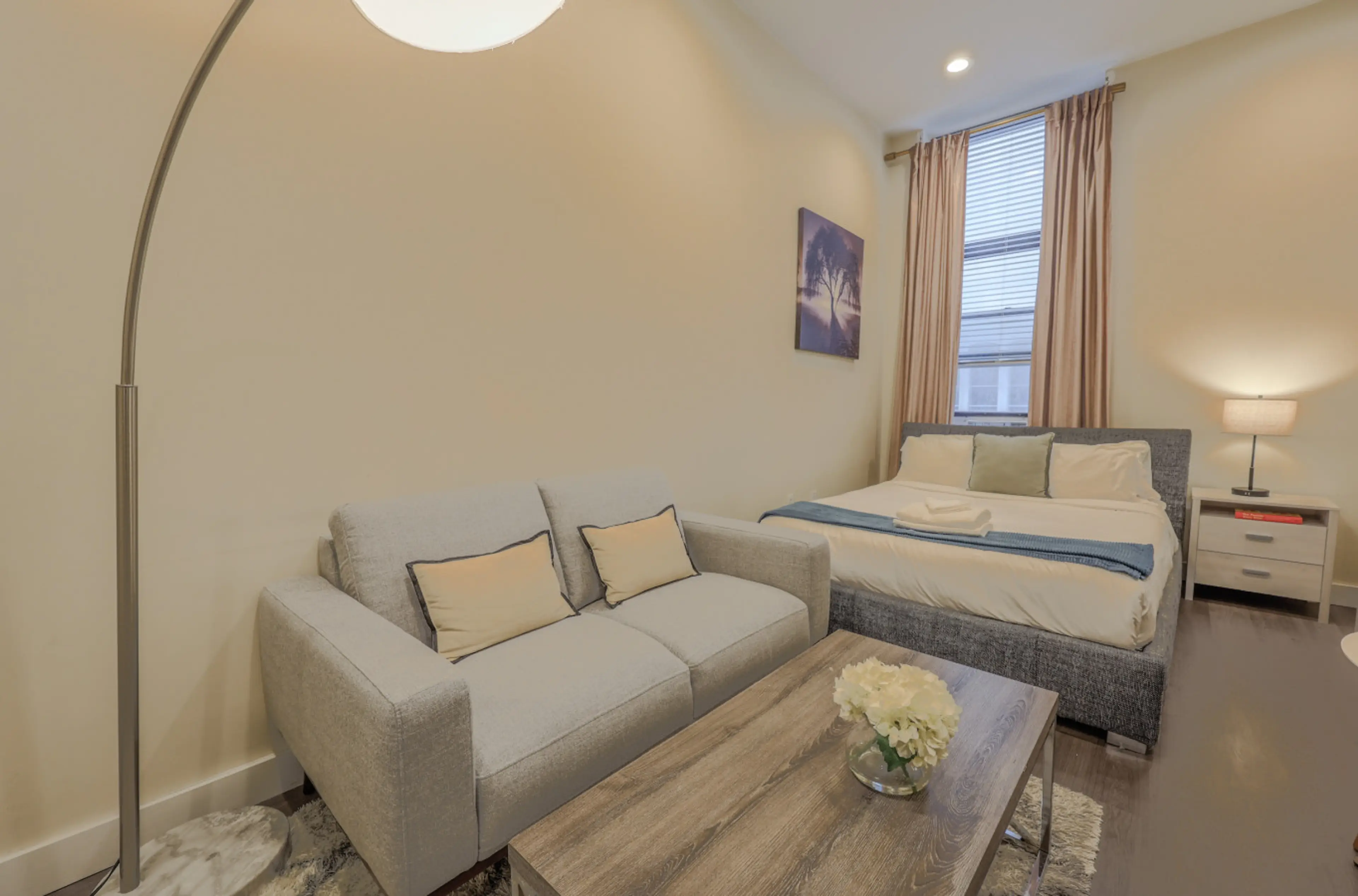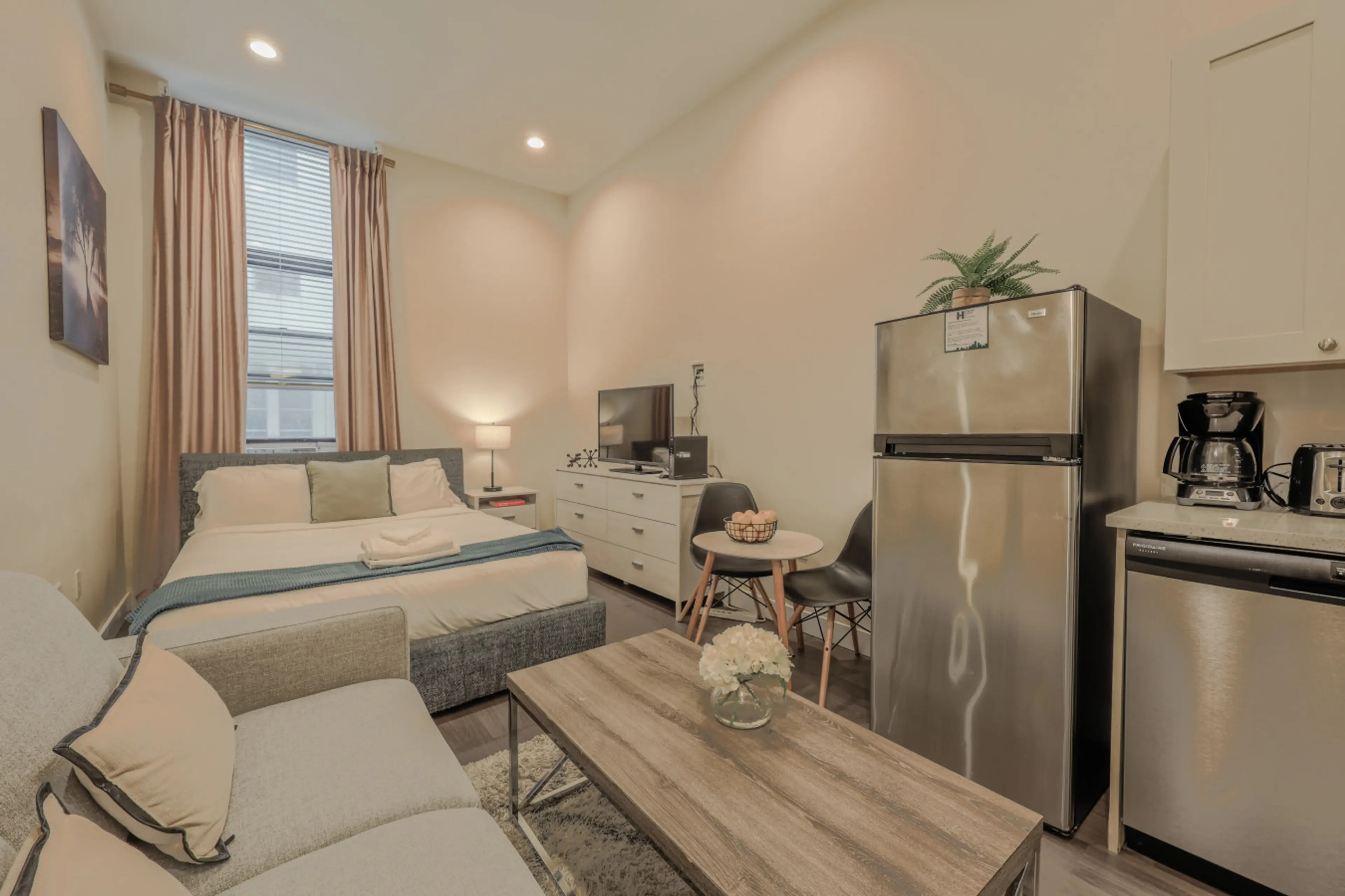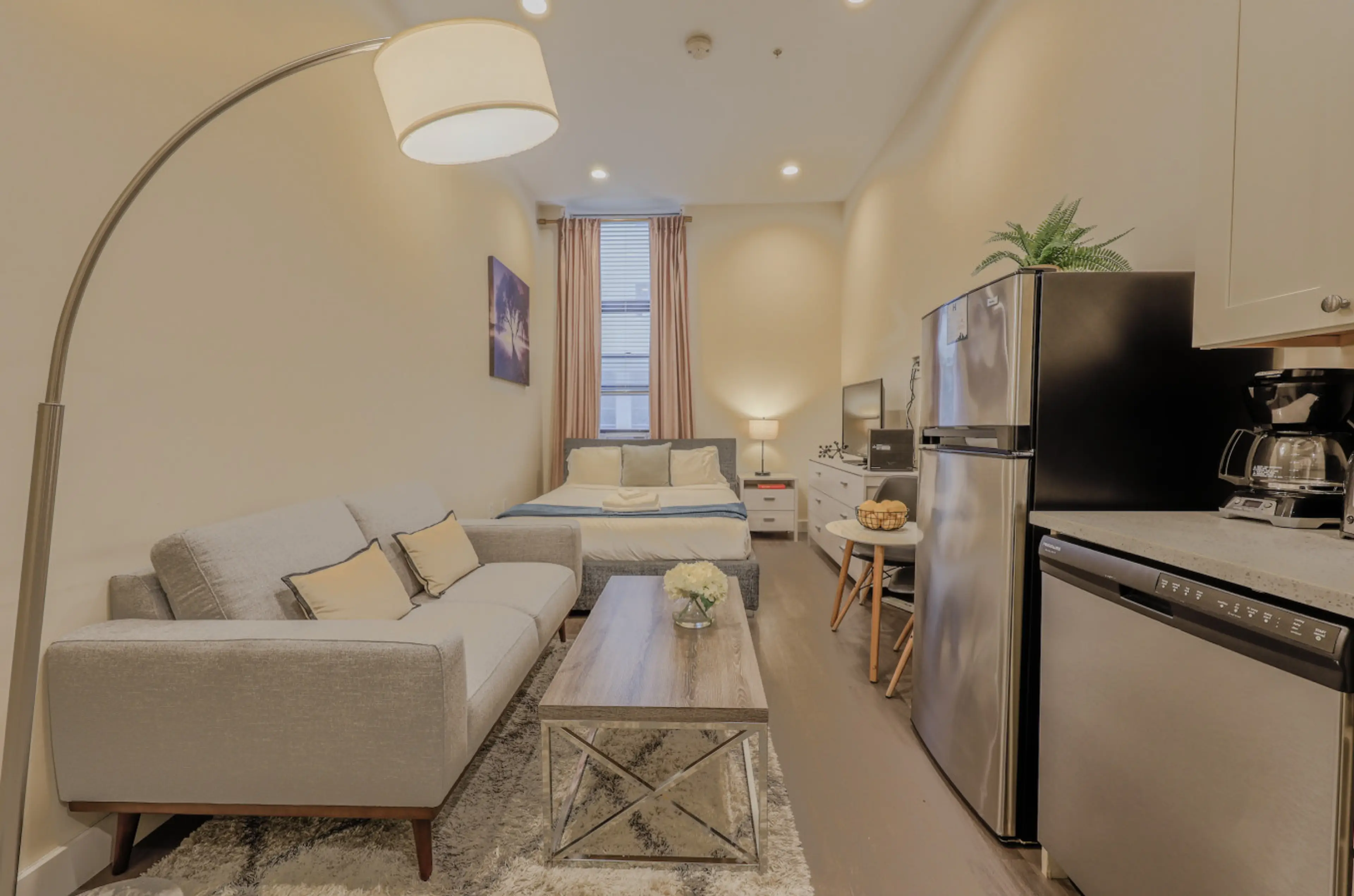 This studio apartment with washer dryer in building is located in the heart of Boston, just a 3 minute walk to Public Transportation. It is designed with simple modern style and has everything you need for a short stay with the comforts of home. Fully stocked kitchen has everything you'd need to c...